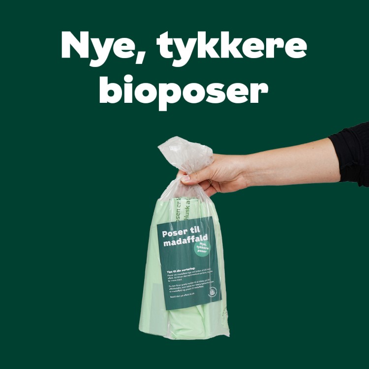 Hent gratis bioposer fra standeren i gården, på biblioteket eller genbrugsstationen: affald.kk.dk/bioposer